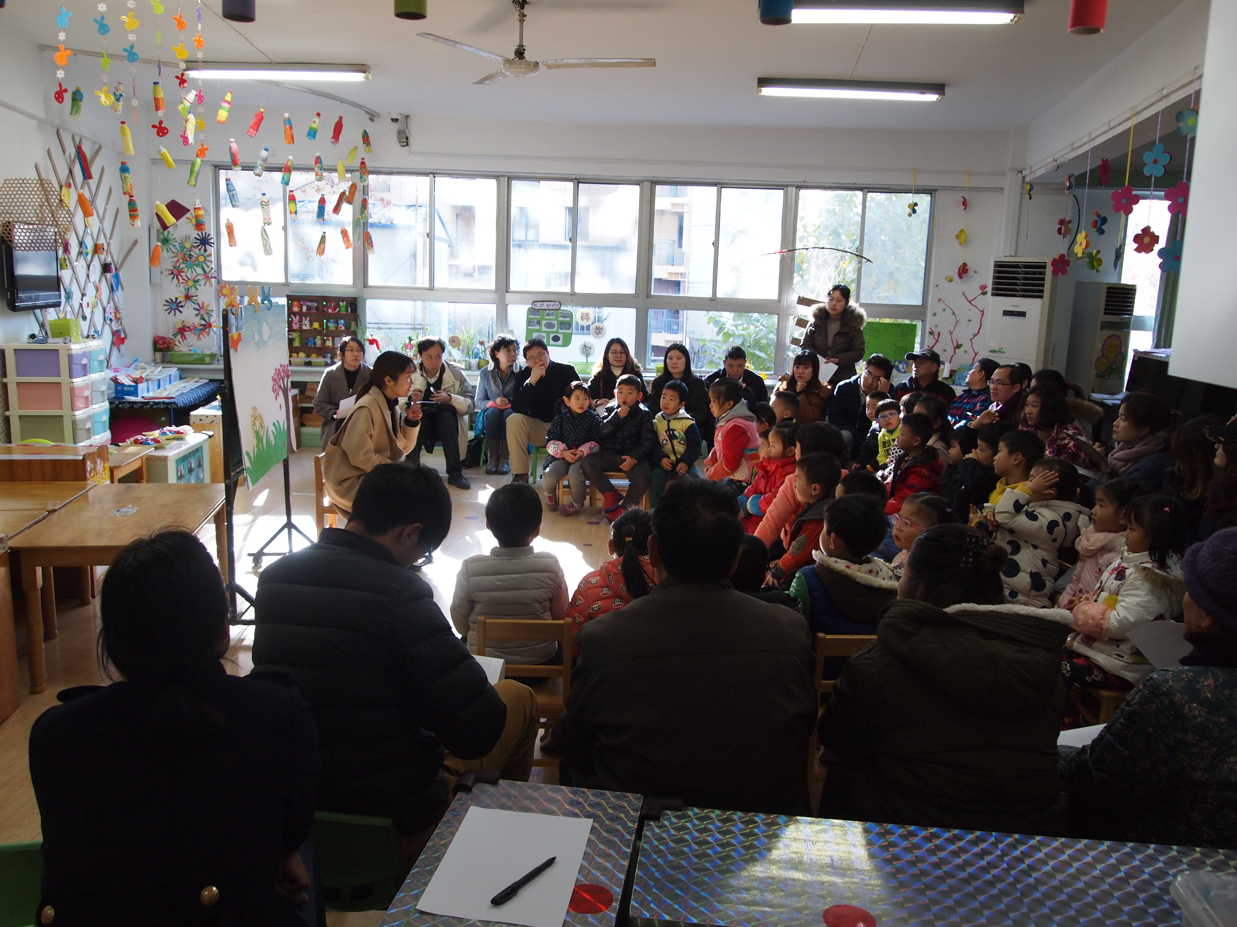 为了加强家园沟通,让家长详细直观地了解幼儿在园的学习生活情况,幼儿园在12月上旬,分别邀请了大、中、小班幼儿家长走进班级,亲身感受孩子们在幼儿园的半日活动。在活动中,各班教师结合本园、本班幼儿的发展水平,精心设计活动,内容涉及幼儿园语言、数学、艺术、健康等各个领域,融综合性、趣味性、游戏性于一体。通过开放活动,每位家长得以近距离地观察了解自己孩子的在园学习游戏生活的情况,增进了对幼儿园工作的理解和信任。